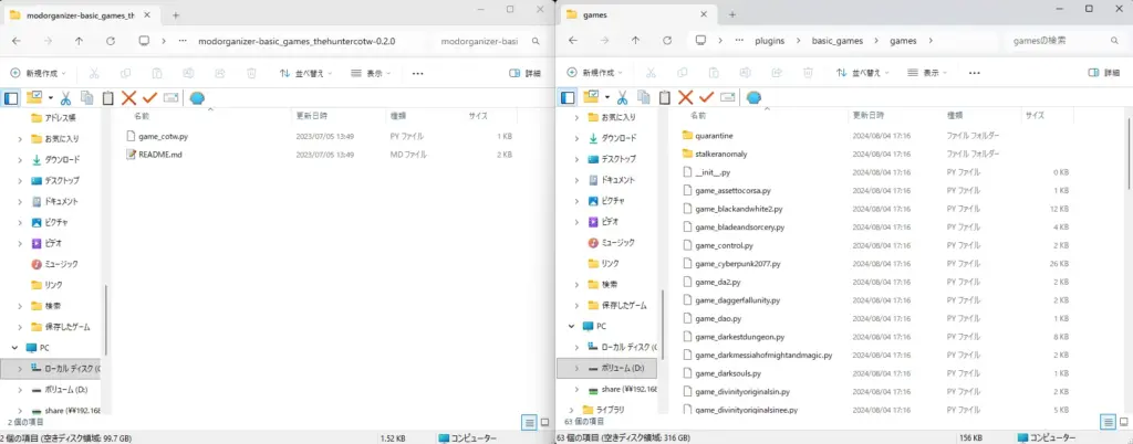 「game_cotw.py」を、先ほど作成したMO2のフォルダの以下のパスにコピーします。
